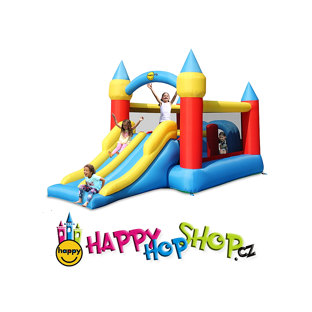 Zavedená značka a světová jednička ve výrobě atrakcích pro domácí a hobby využití Happy Hop nabízí celou škálu nafukovacích skákadel, hradů a skluzavek.