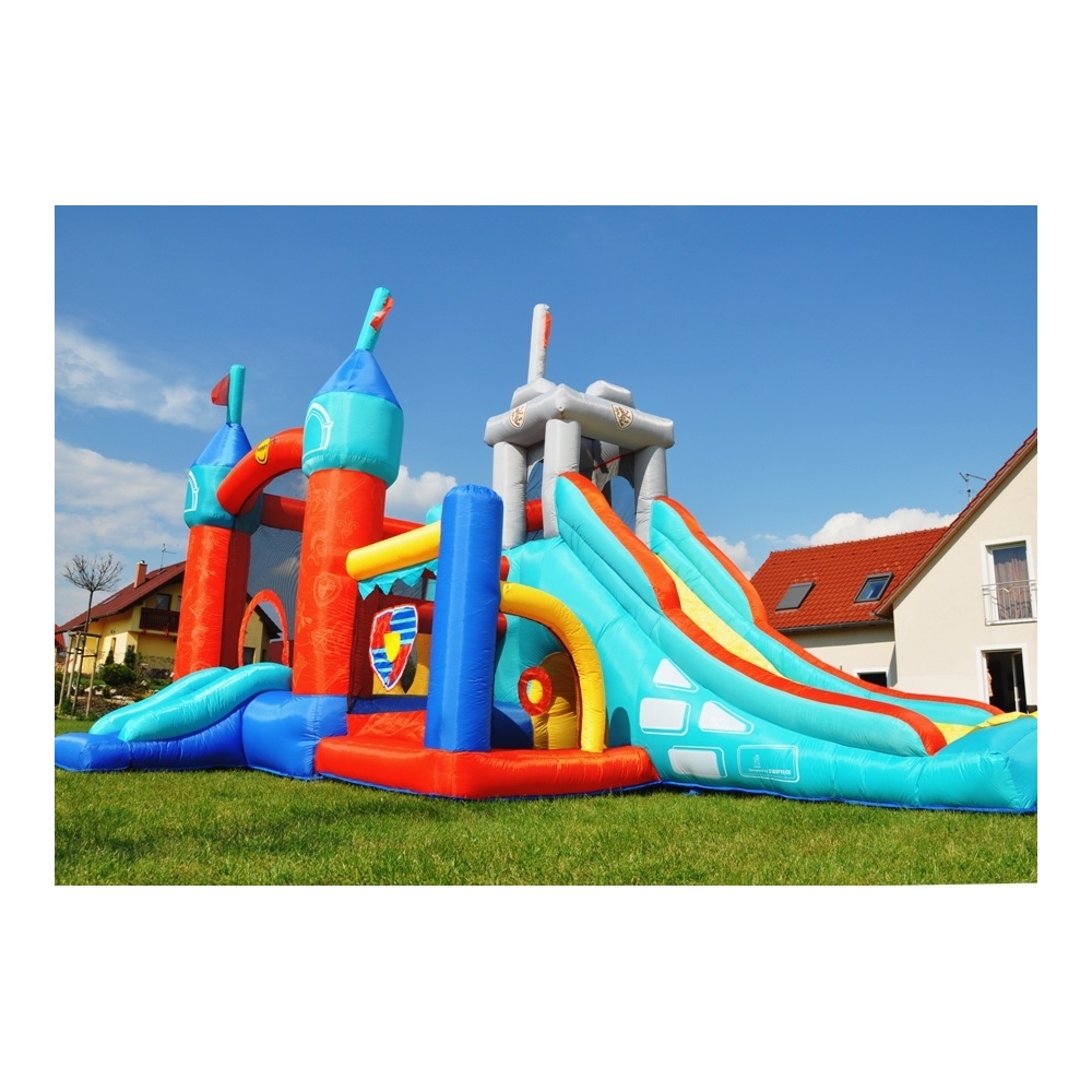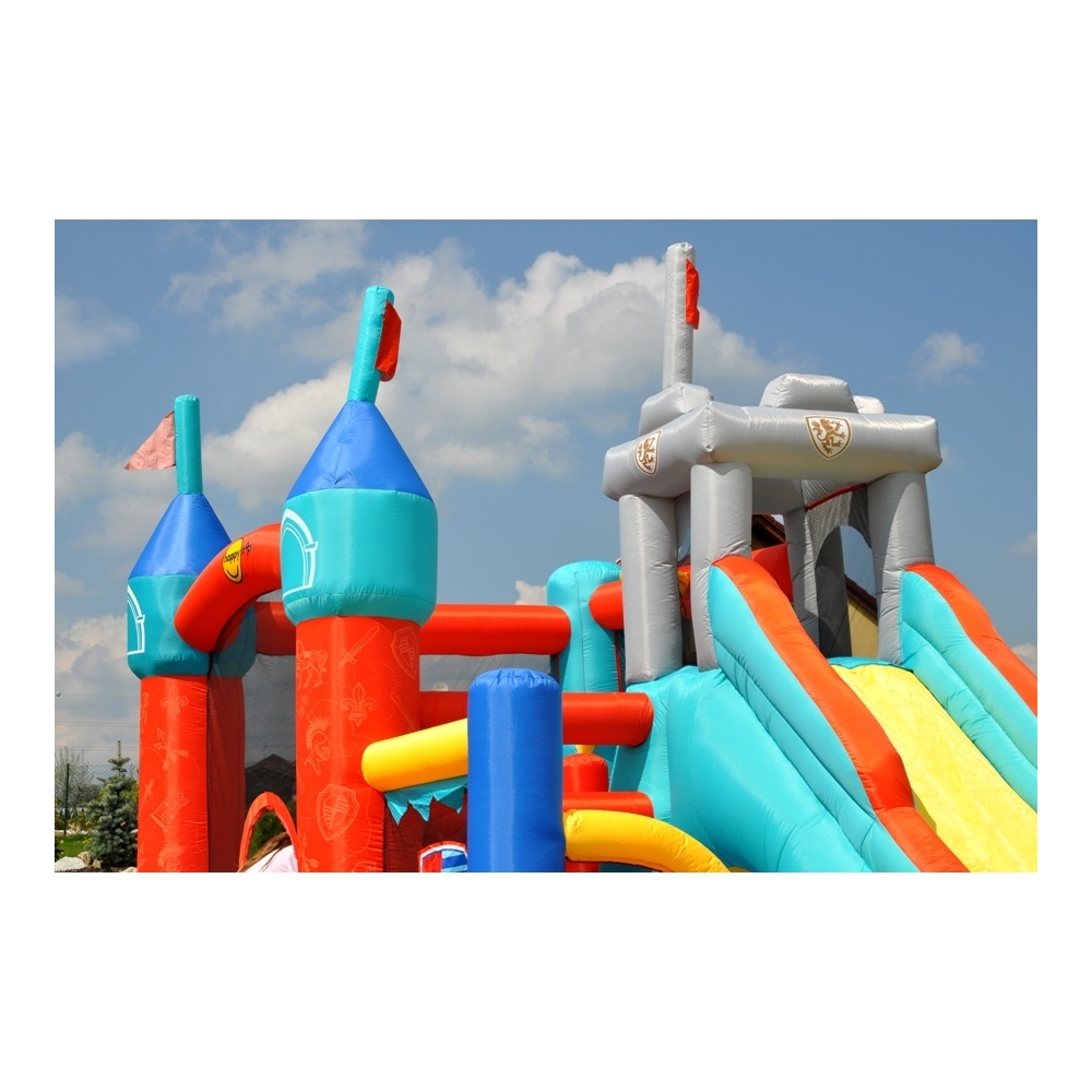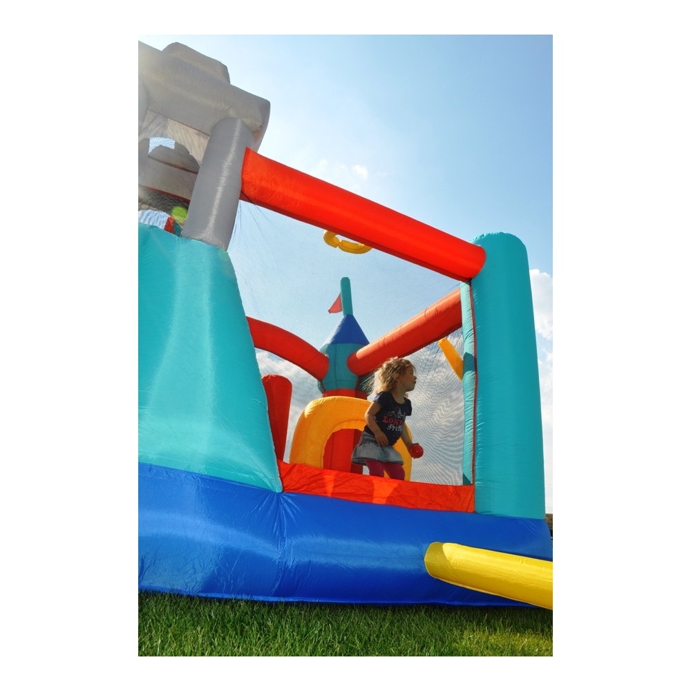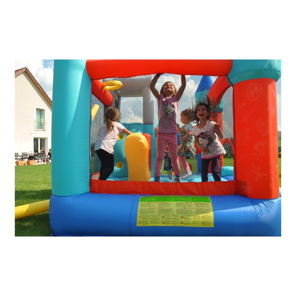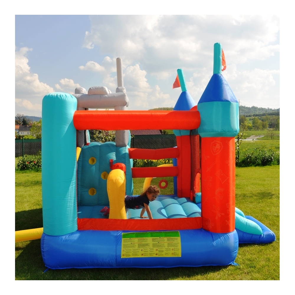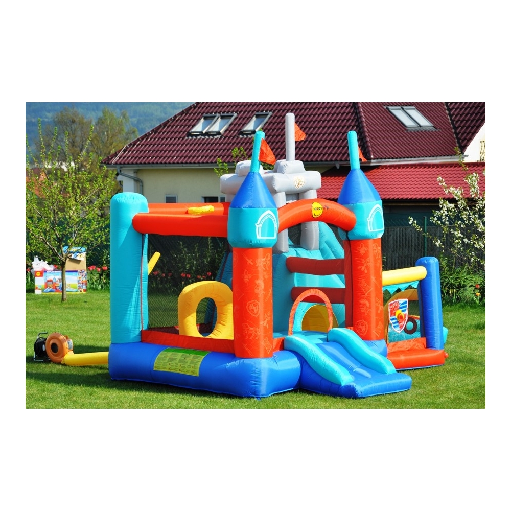 Praktické balení skákacího hradu Happy Hop Multifunkční hrací centrum 13 v 1 Rytířský hrad obsahuje.