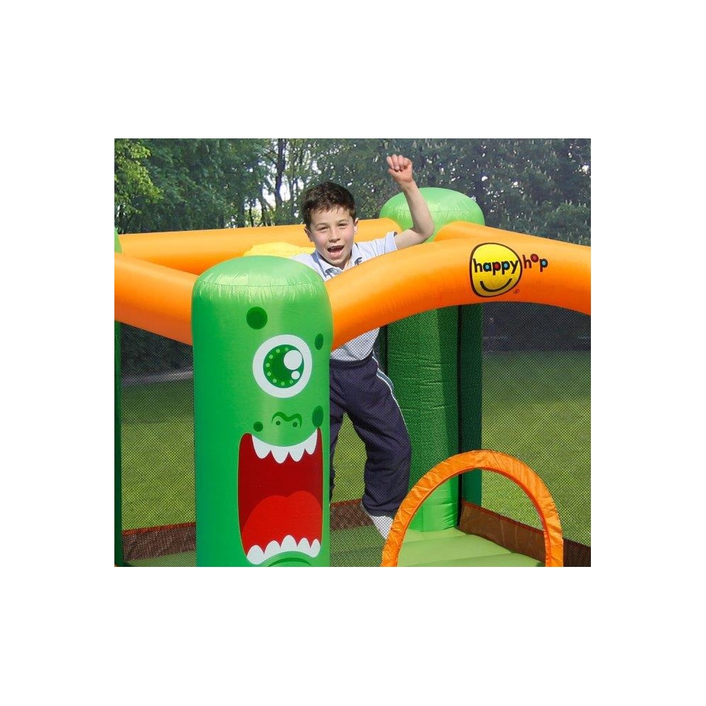 Parádní skákací hrad s opravdu veselým, odvázaným dekorem. Pestré barvy, které nevyblednou. Zábava, která se u dětí neokouká. Nejen na vaší dětské party si kluci a holky užijí skvělou zábavu! Odvažte se a vyberte Crazy monster Happy Hop.