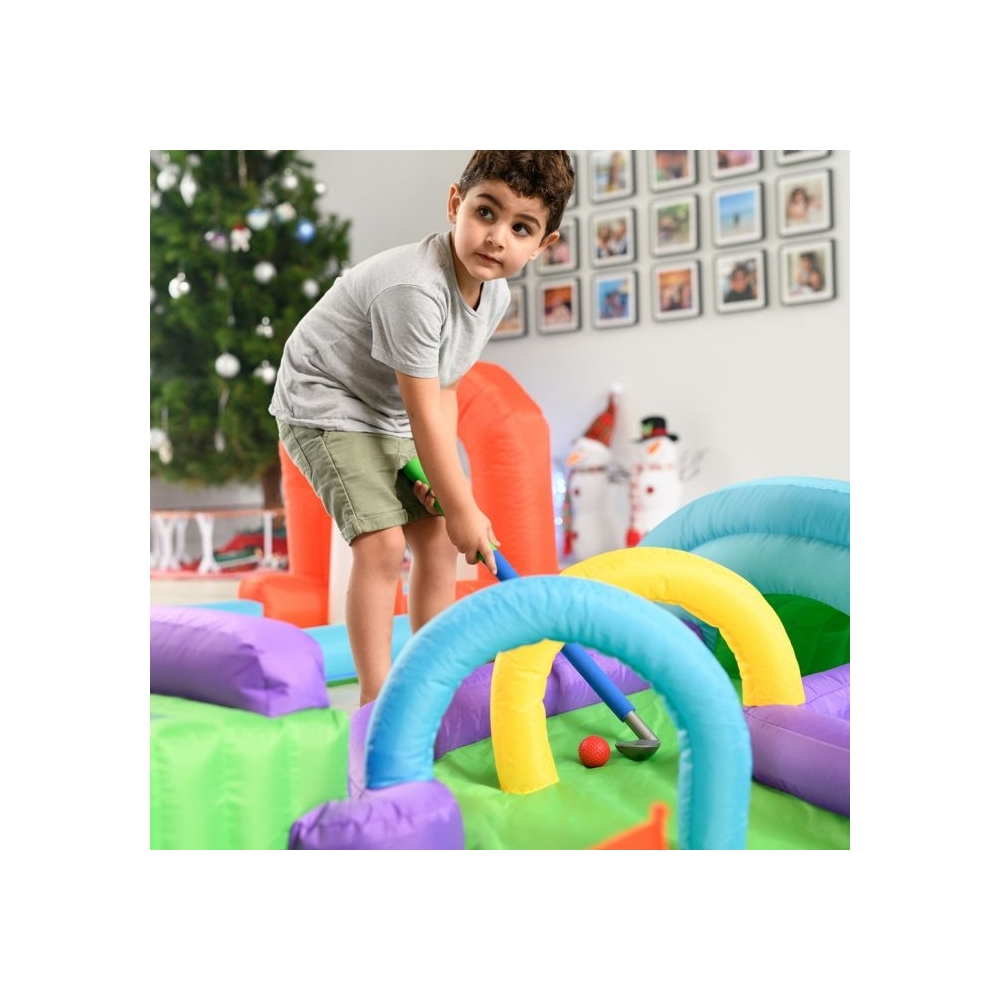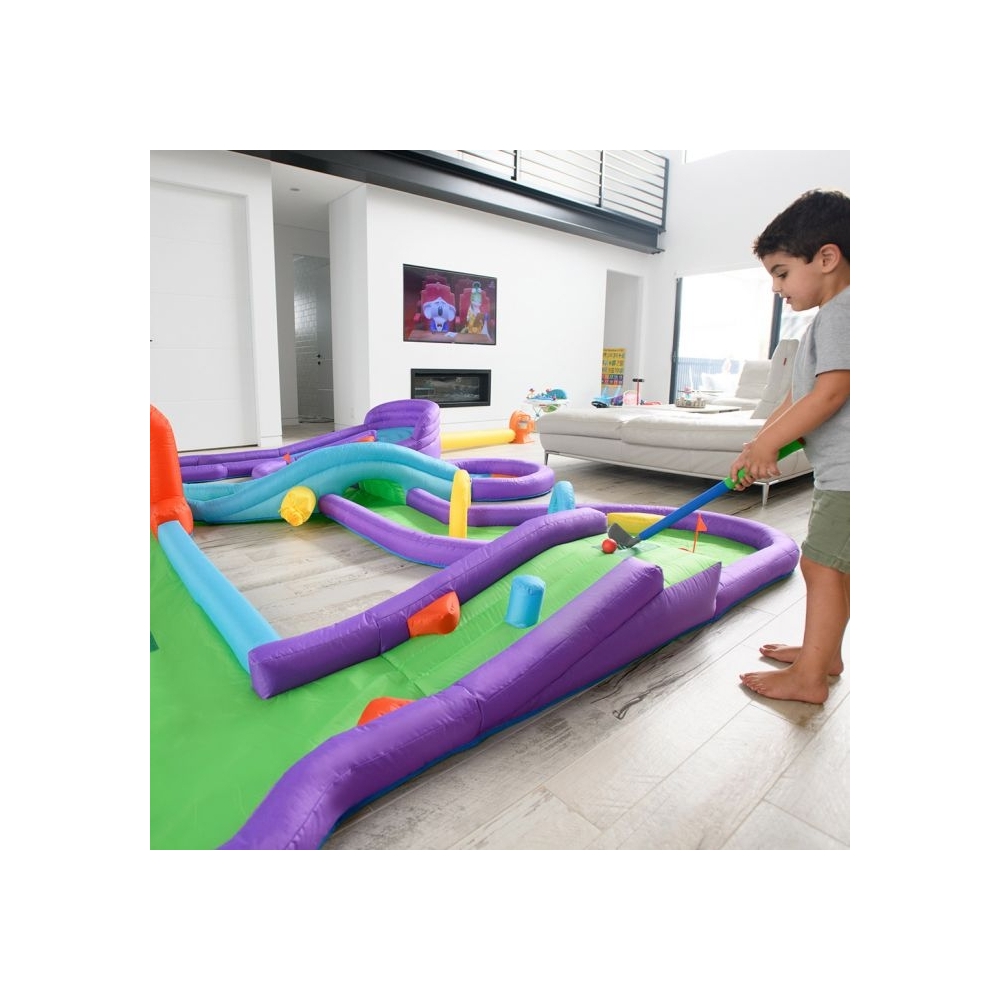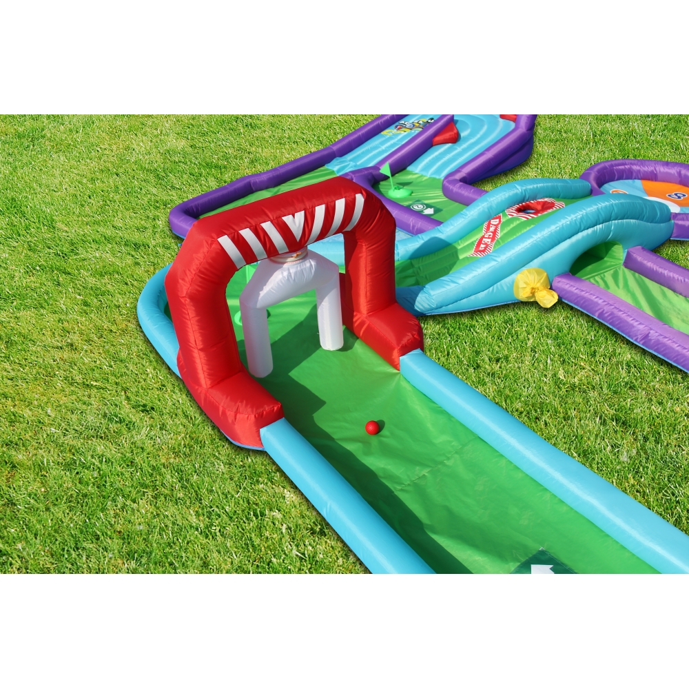Fukar musí běžet po celou dobu provozu, udržuje hrací plochu mini golf trvale nafouknutou. Bílá překážka se díky vnitřnímu proudění vzduchu během hry otáčí. Fukar i opravná sada je součástí balení.