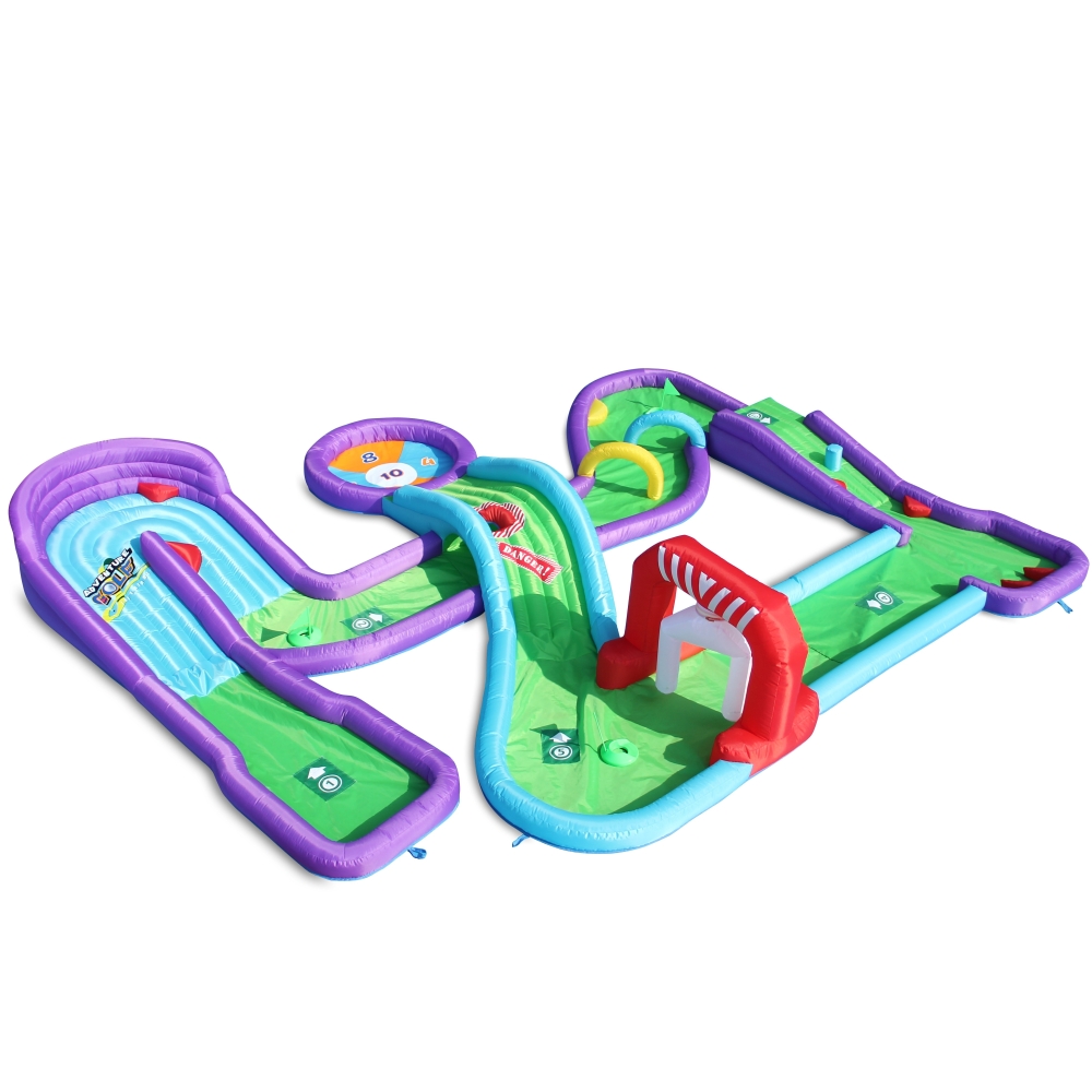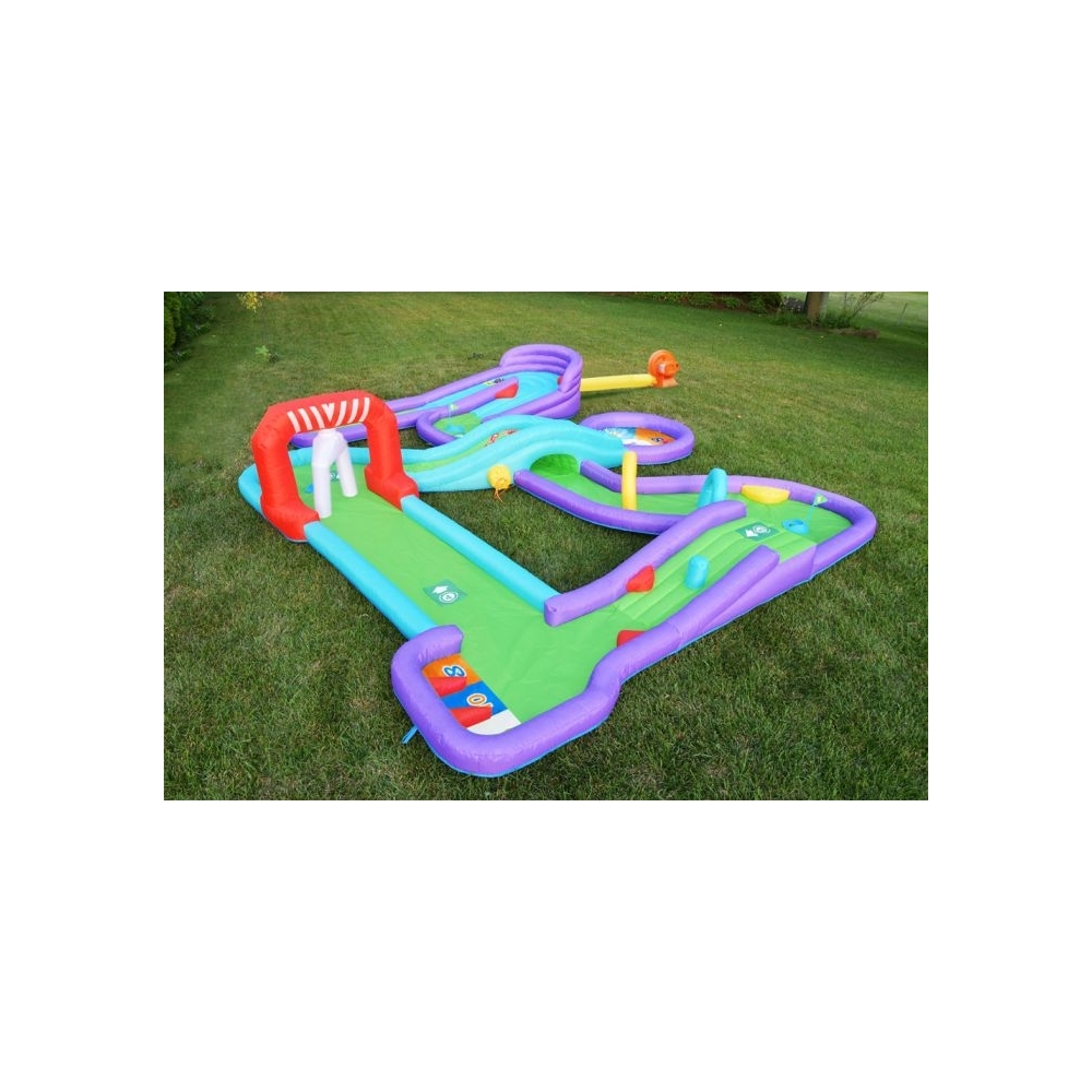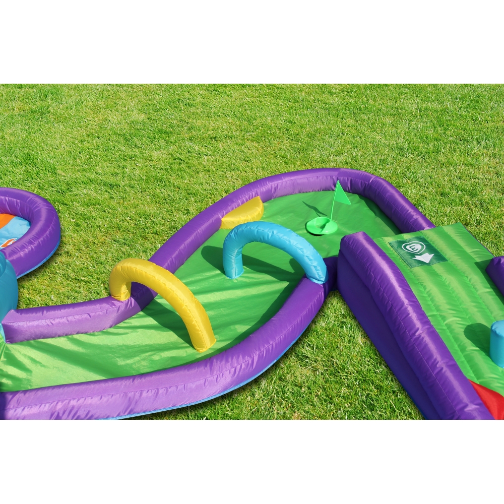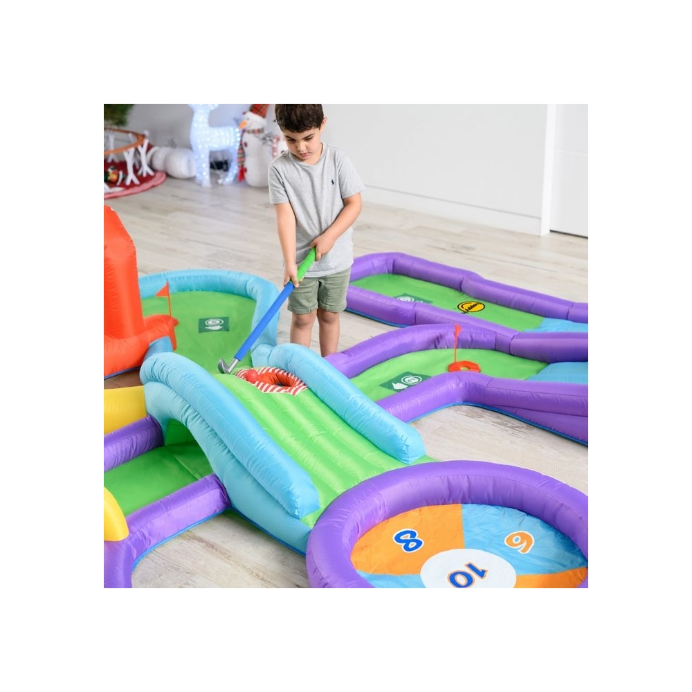 Fukar musí běžet po celou dobu provozu, udržuje hrací plochu mini golf trvale nafouknutou. Bílá překážka se díky vnitřnímu proudění vzduchu během hry otáčí. Fukar i opravná sada je součástí balení.
