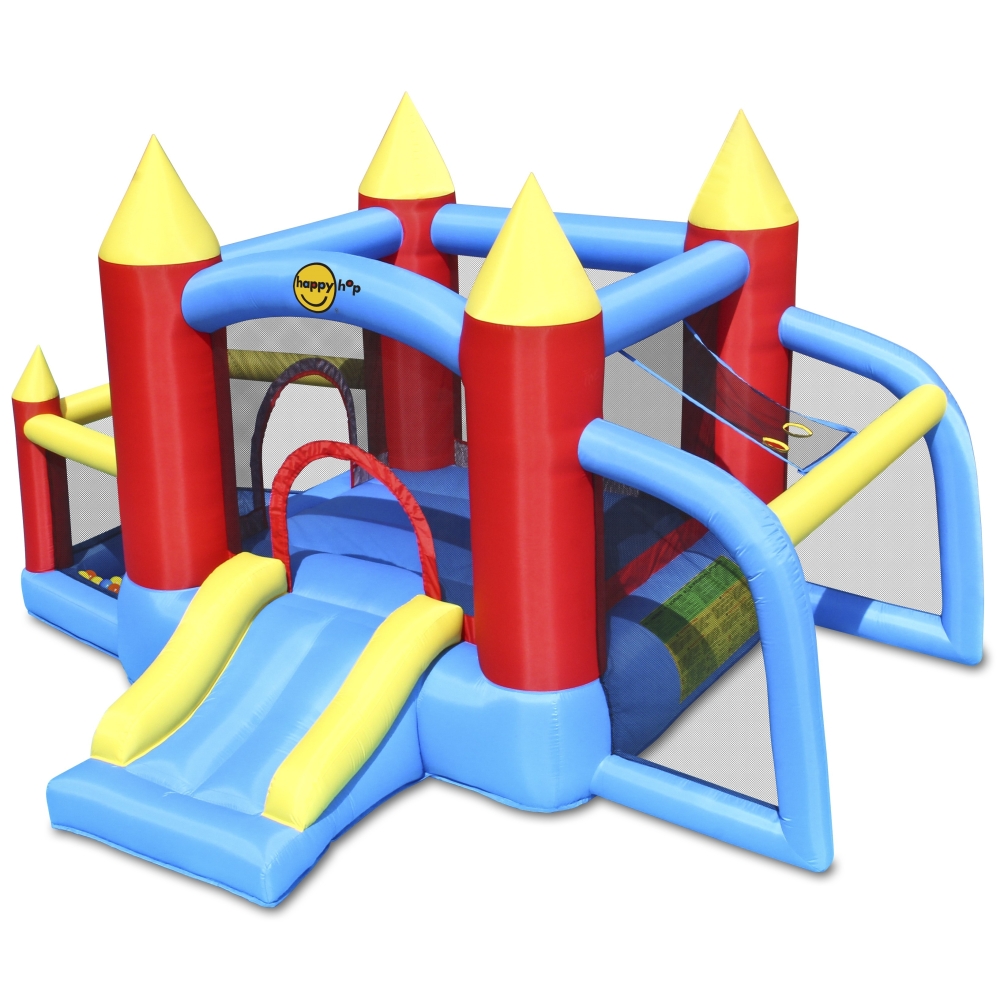 Zavedená značka a světová jednička ve výrobě atrakcích pro domácí a hobby využití Happy Hop nabízí celou škálu nafukovacích skákadel, hradů a skluzavek.