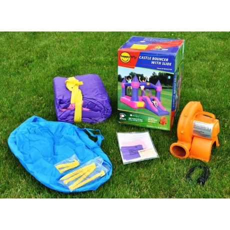 Součástí každého balení Happy Hop je vždy fukar, obal na nafukovací atrakci, opravná sada a kolíky.