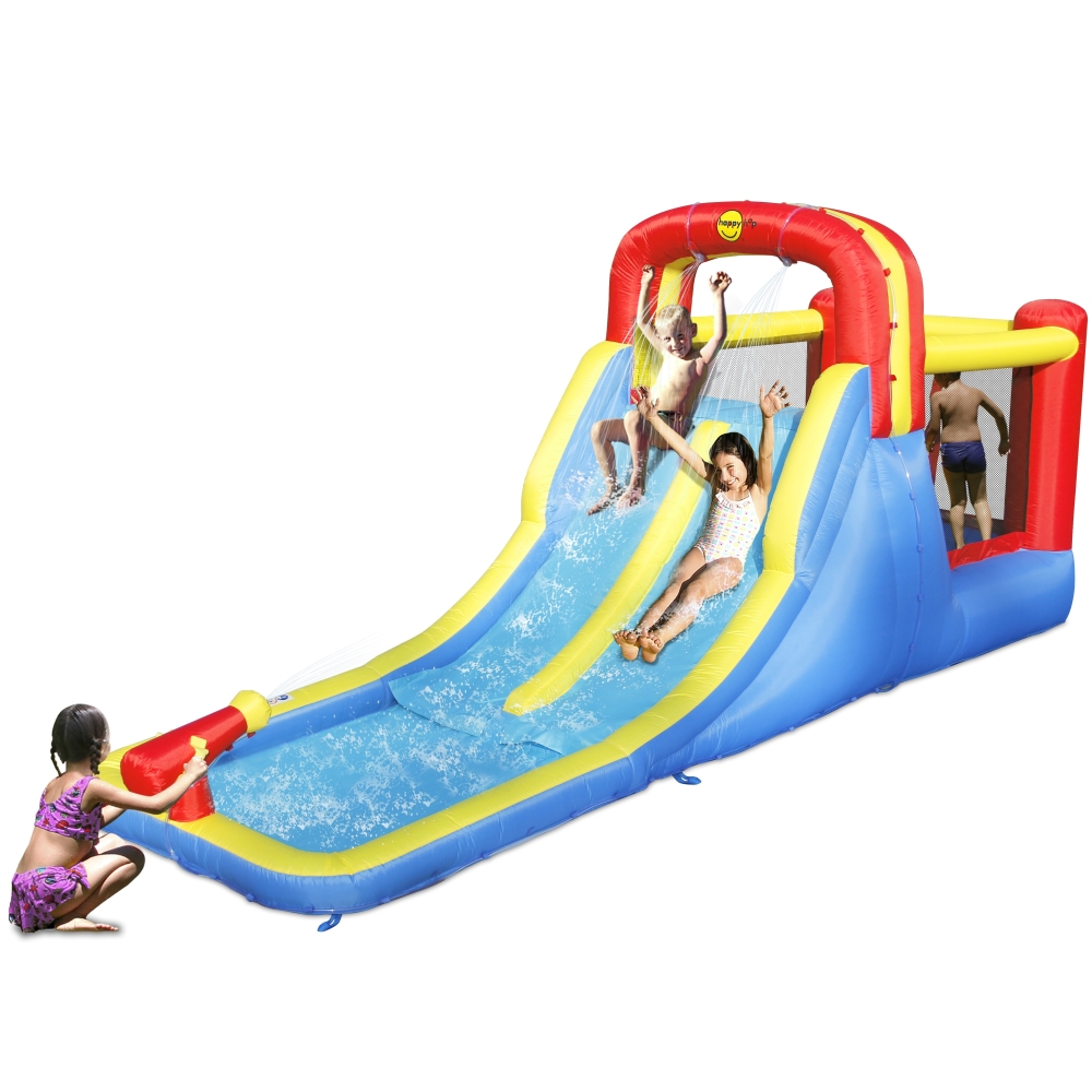 Zavedená značka a světová jednička ve výrobě atrakcích pro domácí a hobby využití Happy Hop nabízí celou škálu nafukovacích skákadel, hradů a skluzavek.