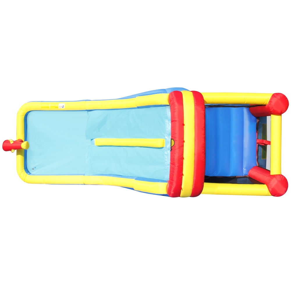 Video. Podobný vodní skluzavka Happy Hop v jiných barvách a bez skákacího Jump místa.